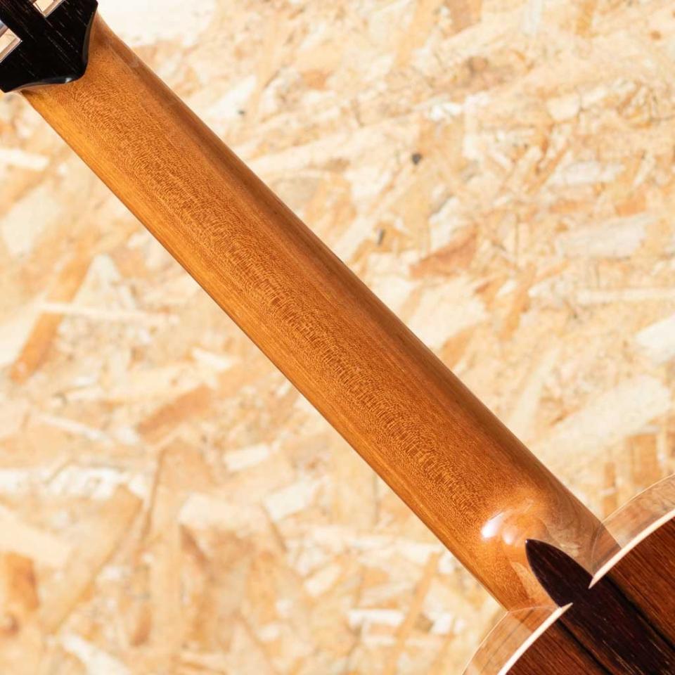 高知生まれ、高知在住のベテランルシアー”川田一高”氏。故 田村満氏に師事し1974年に独立、それから40年以上製作し続けており累計1500本以上ものギターを手掛けてきました。トーレスやブーシェ等の名工達の楽器にも深い造詣をもっており日本トップクラスの名工と言っても過言はありません。本器は希少材にて組み上げられたフラメンコ黒。2021年製USED品です。レッドウッドトップ、マダガスカルローズウッドサイド&バック、セドロネック、エボニー指板、マダガスカルローズウッドブリッジ、20フレット延長仕様。ナット幅54mm、弦長660mmとやや大きめの規格で製作されているオーダー品。希少材を惜しみなく使用しているだけでなく、フラメンコモデルでありながらレッドウッドをトップに使用した”通”な一本。レッドウッドならでの軽やかかつ渇きのある音色を存分にお楽しみいただけます。ネック裏6弦側に大きめの凹み傷が数カ所ほど見受けられる他、細かな傷や使用感はあるものの割れなどの大きなダメージなどはなく、ネックコンディションは良好。汎用ハードケースが付属いたします。