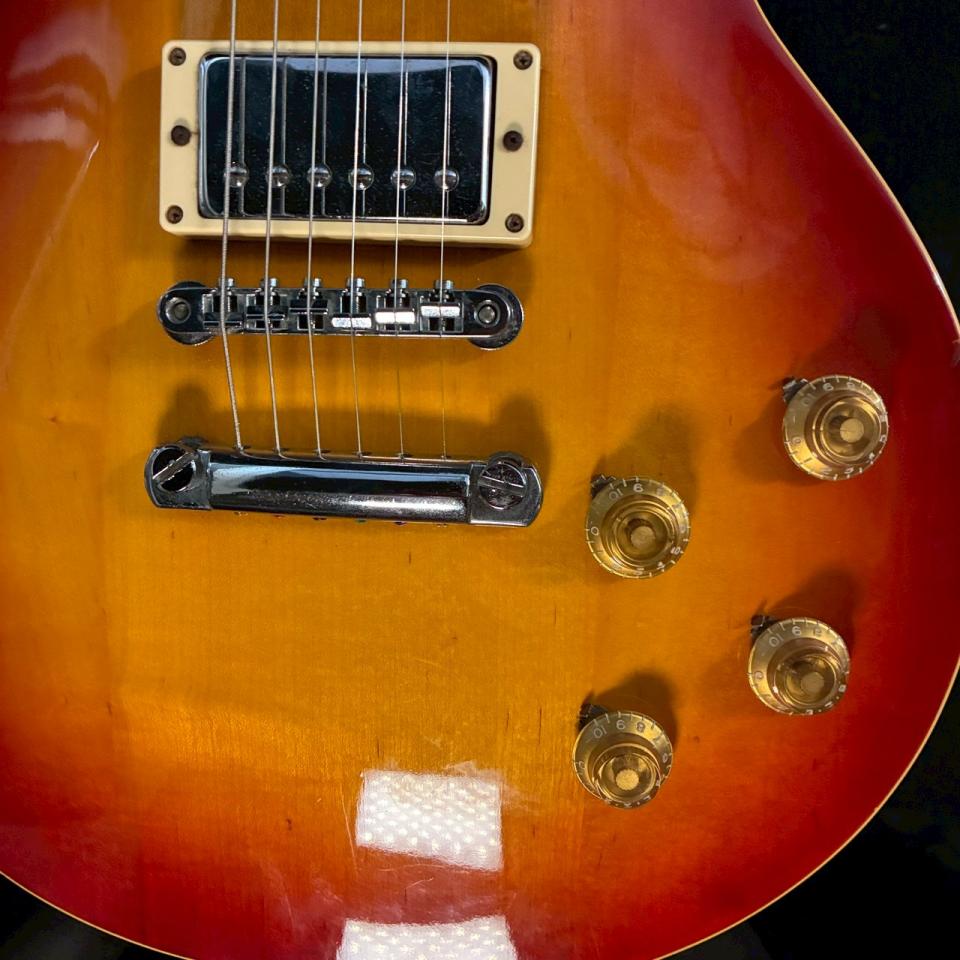 チェリーサンバーストのカラーは、このスタイルの魅力を語るうえで欠かせない王道カラー。経年による落ち着きも加わり、派手さに頼らず深みのある表情へと変化しています。オールドスタイルらしい佇まいをしっかりと感じられるルックスです。