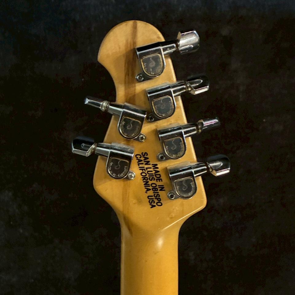 ハードテイルブリッジ仕様によりチューニングの安定感やダイレクトな鳴りも良好。Musicmanらしい剛性の高いネックと相まって、レスポンスの速さや音の芯の強さもしっかり感じられます。さらにペグにはW Germany表記のSchaller製を搭載しており、当時らしい信頼感あるパーツ構成も見逃せません。