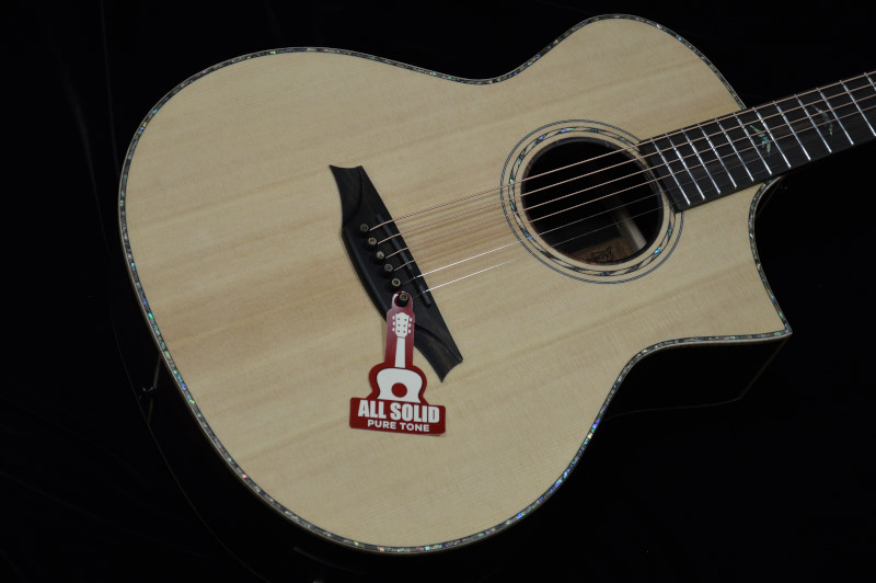 ロッキーシリーズは、ソリッドシトカスプルーストップ、エボニーバック&サイドのオール単板ボディを採用しています。