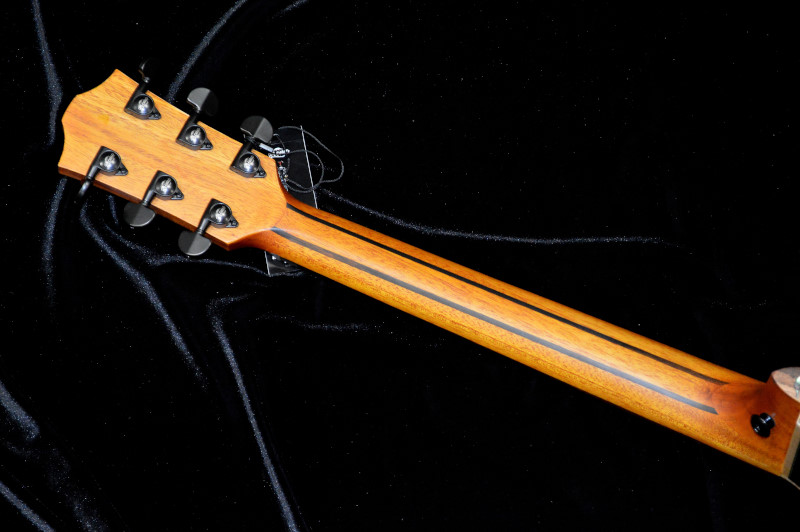幅広い共鳴周波数と豊かな響きを生み出します。マホガニーネックとエボニー指板の組み合わせは、なめらかな