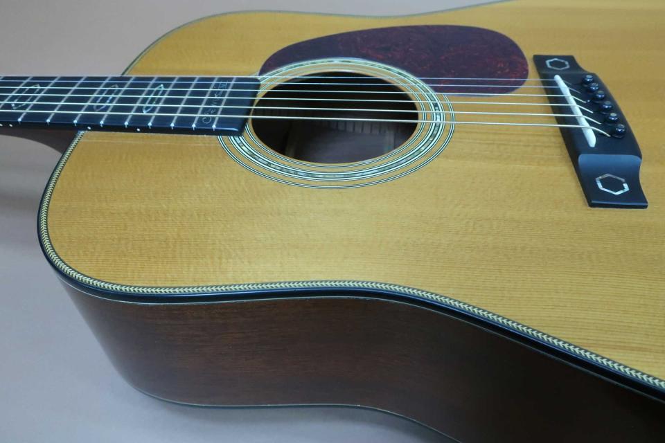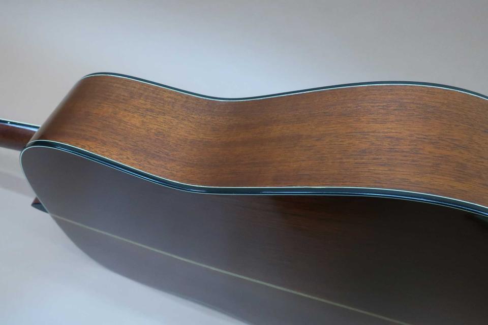 サウンドはスキャロップドXブレイシングが採用され、明るく優しいマホガニー・トーンは明瞭で軽快な鳴りも魅力でオールジャンルでご使用が可能です。軽く爪弾いても倍音豊かな癒し系の響きから、軽いストロークでもレスポンスの良い軽快な鳴りで演奏が楽しめます!状態はペグの金属の曇りが僅かに有りますが機能的にも問題はありません。トップはピックガード上のスクラッチ傷ぐらいで傷や打痕は光に翳して分かるレベルの極小さなものがブリッジ下辺りに見られるぐらいで綺麗なコンディションを保っております。サイド&バックも磨き傷ぐらいで素晴らしく綺麗なコンディションを保っております。ネック裏も綺麗でフレットも殆ど減っておらず9分目は残っております。弦長約645mm、ナット幅約43mm、弦高も12F6弦」で約2.5mm、1弦約2mmで標準、サドルの余裕も約5mmありネックの反りや元起もなくネックを含めプレイヤビリティも良好です。Martinタイプの頑丈なハードケース付です。中古市場でも滅多に出回らないコレクタブルなリミテッド・エディション、マホガニーバージョンの限定モデルです!是非この機会にご検討を頂ければ幸いです。