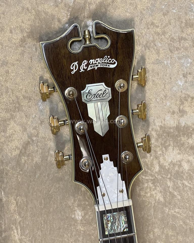 D'Angelico(ディアンジェリコ):米国ニューヨークで1932年にジョン・ディアンジェリコ(John D'Angelico)によって創業されたギターブランド。 1964年までの生涯で1,164本を製作。アール・デコ調のヘッドインレイのNew YorkerExcelと名付けられたアーチトップギターはジョニー・スミス、チェット・アトキンスなど、巨匠と呼ばれるギタリストに使用された。現在は日本製のレプリカ・モデル(NYL,NYSS)やウクレレ(MU)も存在する。(D'Angelico/ディアンジェリコのキーワード検索結果はこちら)