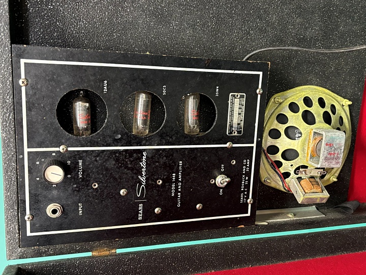 ハードケースに真空管アンプが付いた、とてもユニークなモデルで、1950年代から60年代にかけて、シアーズから通信販売用ギターセットとして全米に販売されたモデルです。