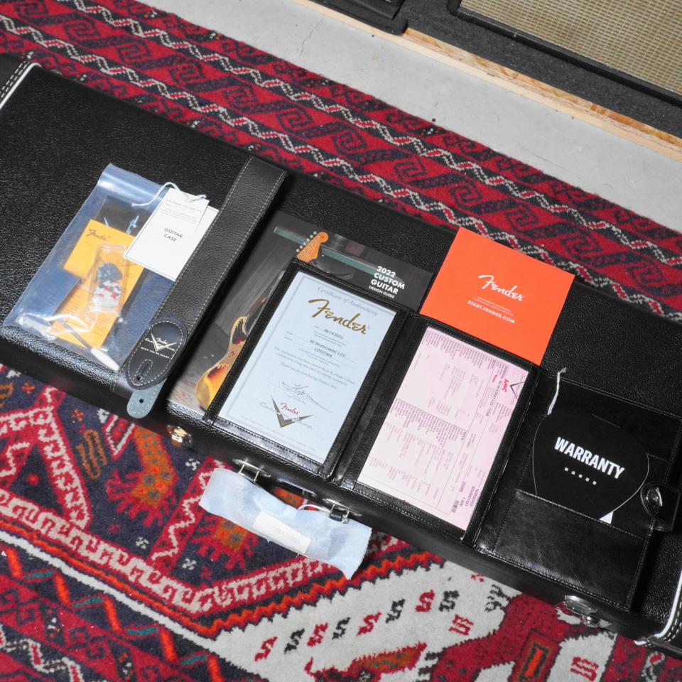 2022年製。厳選された2ピースアルダーボディに、やや太めな'66 Strat Oval "C"シェイプを採用した1ピースクォーターソウン・メイプルネック、トラロゴのラージヘッドという1966年仕様を再現した1本です。ピックアップにはCustom Shop製 Hand-wound Strat 65 Single Coilピックアップを3基搭載、指板にはMedium Jumbo 6150フレットを搭載した9.5インチラジアス指板を採用しております。通常のクローゼット・クラシックよりも更に薄いラッカー仕上げのDLX Closet Classicが採用されており非常に良い雰囲気を醸し出しております。