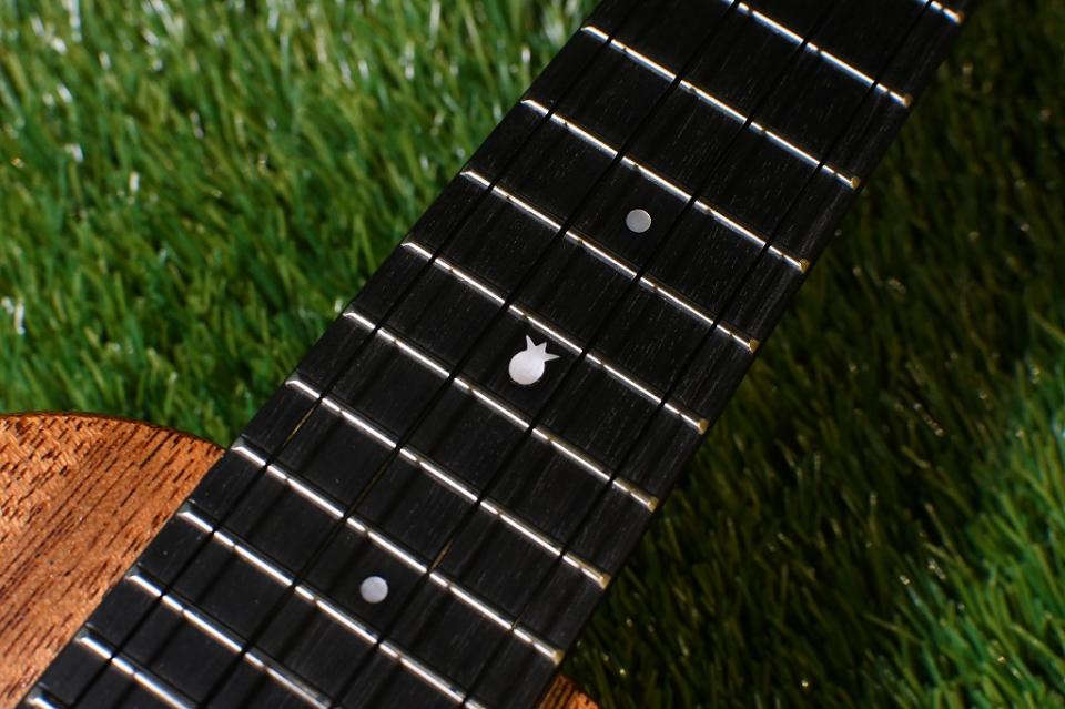 ヘッドインレイには、ウクレレの成長、プレイヤーの成長を願い、パイナップルのつぼみが描かれています。