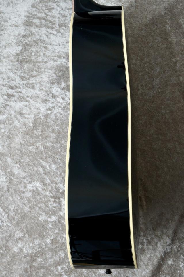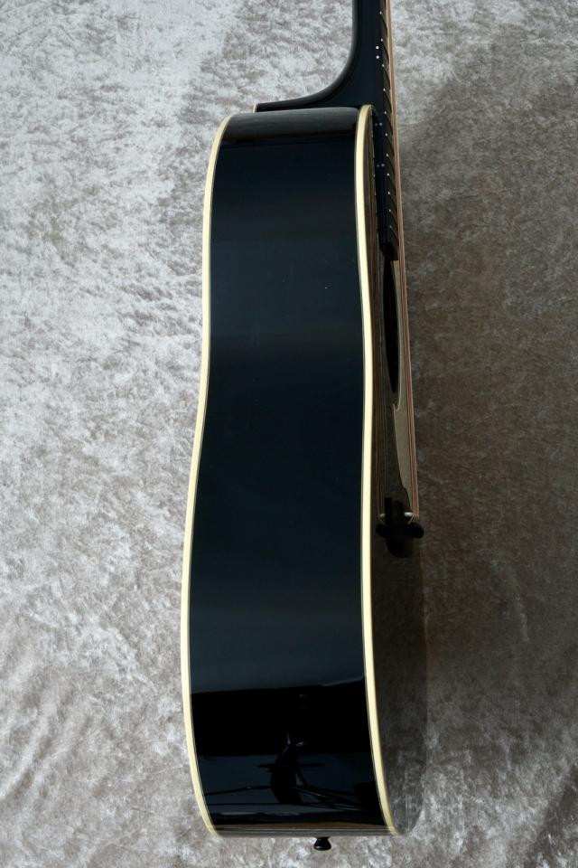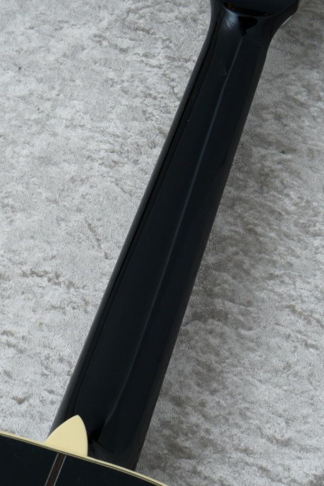 木材は厳選されたシトカスプルーストップ、インディアンローズウッドサイド&バック、ややスリムで握り心地の良いアフリカンマホガニー1Pネック、エボニー指板&ブリッジの組み合わせ。