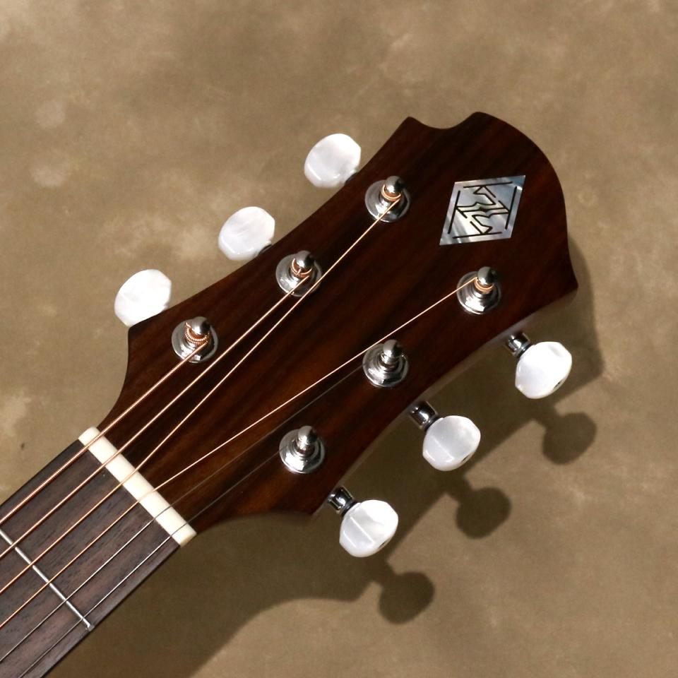 ボディー・トップは板材の時に真空状態で熱を加えることで余分な水分やミネラルを取り除いたソリッド・スプルースを使用し、サイドとバックにはサペリを用いて狂いの出にくい安定したボディー剛性を実現しました。