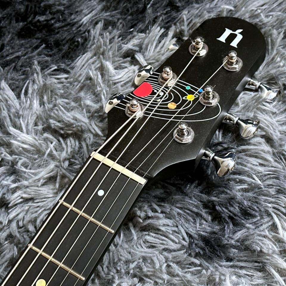 ソーラーシステムシリーズのBlack Holeモデルをスペックそのままで小型化しました。HPL(ハイ・プレッシャー・ラミネート)材を使ったボディはカラっとした明瞭なサウンドが特徴。指板とヘッドには、ソーラーシステムこと太陽系を示す個性的なインレイが入っています。惑星ごとに素材を変えるという凝った仕様です。