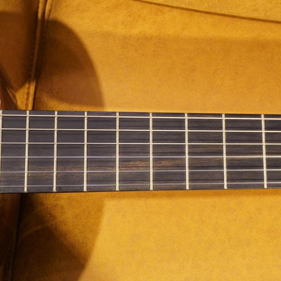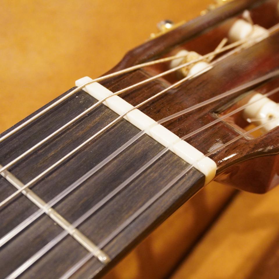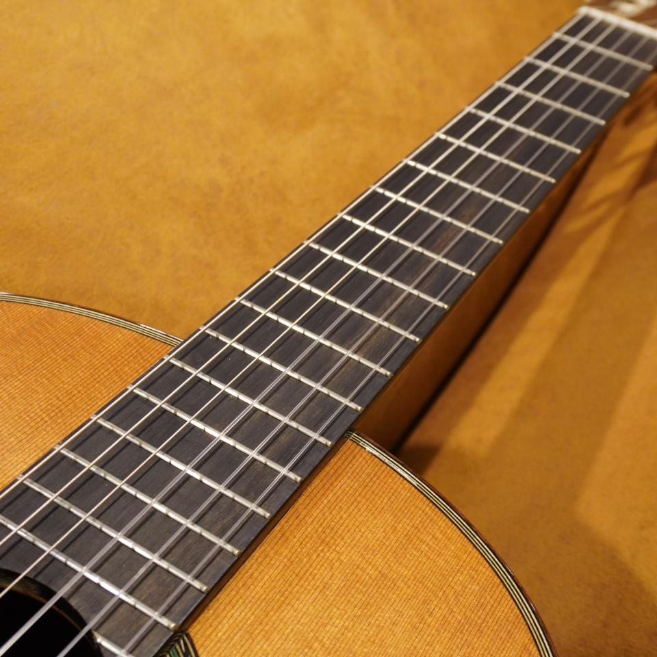 シダー材特有の甘く温かみのあるトーンに加え、指板には高級材であるエボニー(黒檀)を採用。音の立ち上がりが非常に良く、繊細なタッチもしっかりと音にしてくれます。