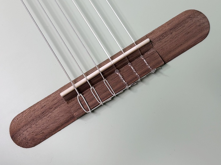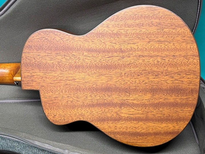 ボディは単板シダーウッドを採用し、サイド&バックはマホガニー、ネックもマホガニー、指板とブリッジにはウォルナットを使用。スケールは610mmのショートスケール、ナット幅は48mm、ハイポジションでの演奏性にも優れています。