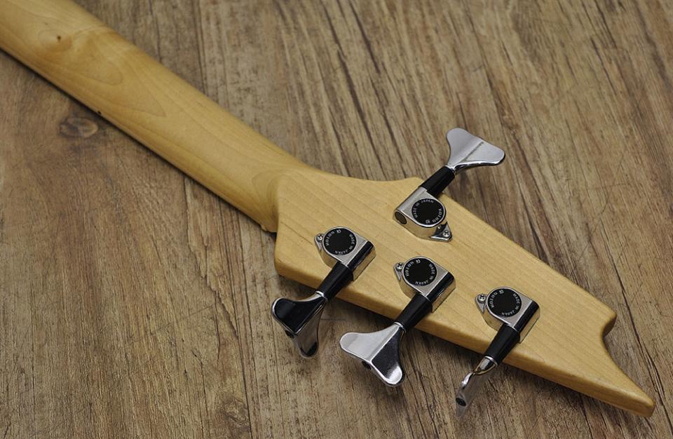 ボディは取り回しの良さと存在感を両立したDAGGERシェイプを採用。ネックにはメイプル、指板にもメイプルを使用しており、立ち上がりの速いアタックと抜けの良いサウンドが特徴です。視覚的インパクトだけでなく、しっかりとした演奏性も兼ね備えた設計となっています。