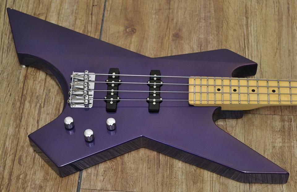 LOUDNESSの高崎晃氏が手掛けるブランド Killer による人気モデル KB-DAGGER JJ。鋭く尖った独自のボディデザインと、ステージ映えする鮮やかなSparkling Purpleフィニッシュが印象的な一本です。