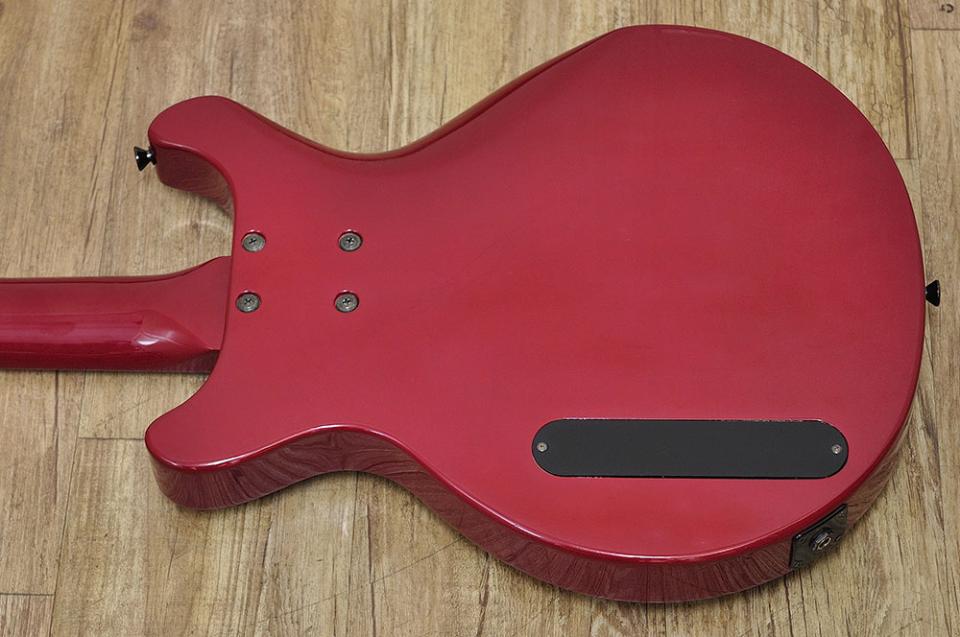 コンパクトで取り回しの良いボディ設計により、長時間の演奏でも負担が少なく、ライブパフォーマンスにも適したバランスの良い仕上がり。ネックにはメイプル、指板にはローズウッドを採用し、しっかりとしたアタック感とスムーズな演奏性を実現しています。