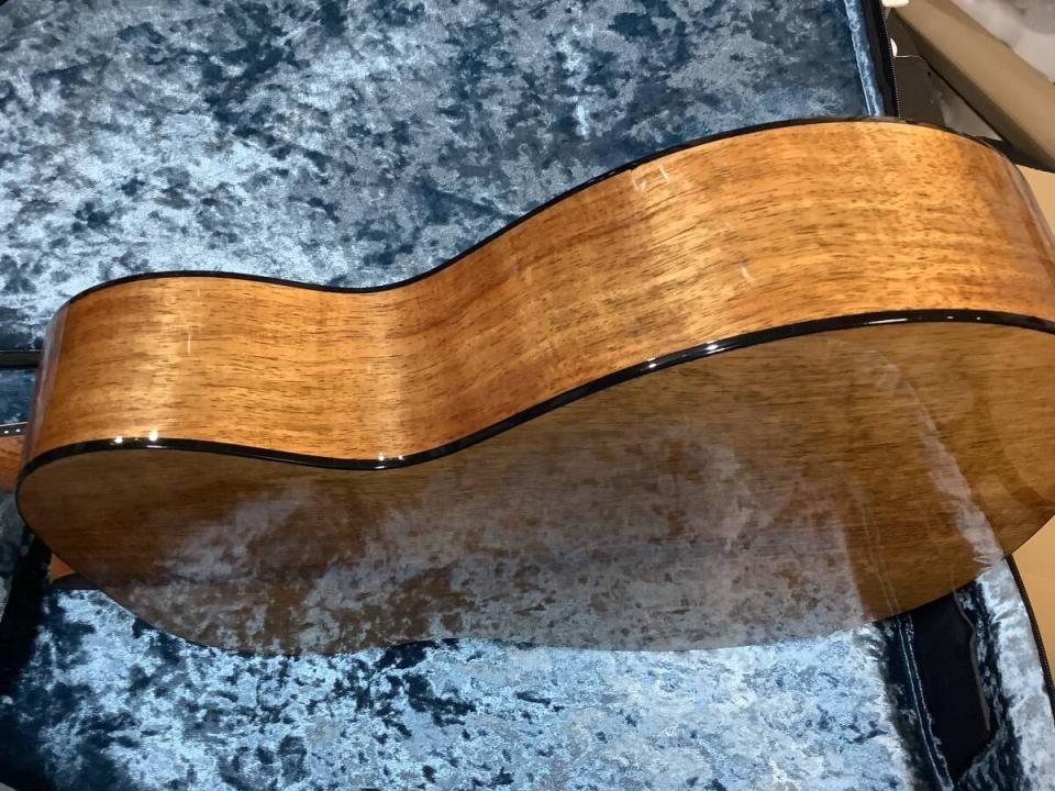 音の伸びが心地よく、ストロークは勿論ですがメロディも美しく響き、000サイズのボディは懐に収まりやすく抱えやすいシェイプ、低音域がすっきりとしておりバランスのとれたふくよかな鳴りのいいサウンドが魅力です。