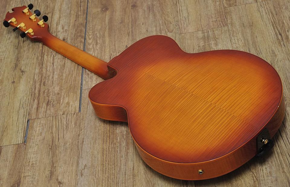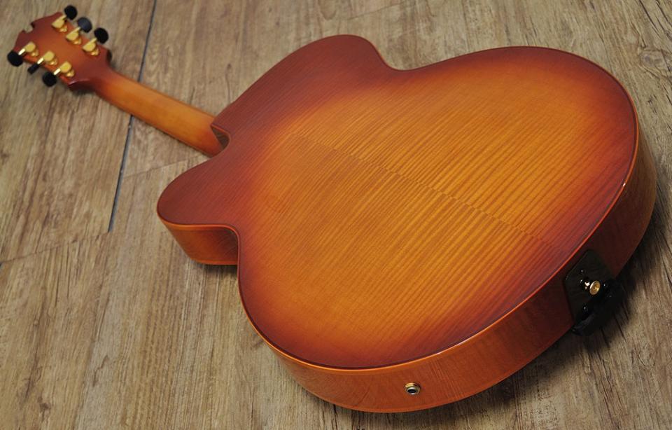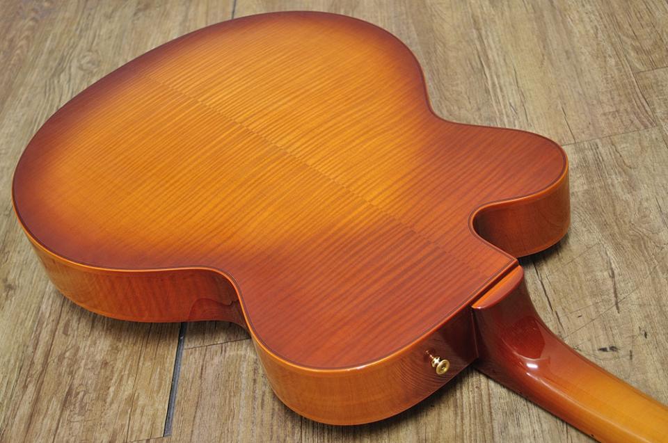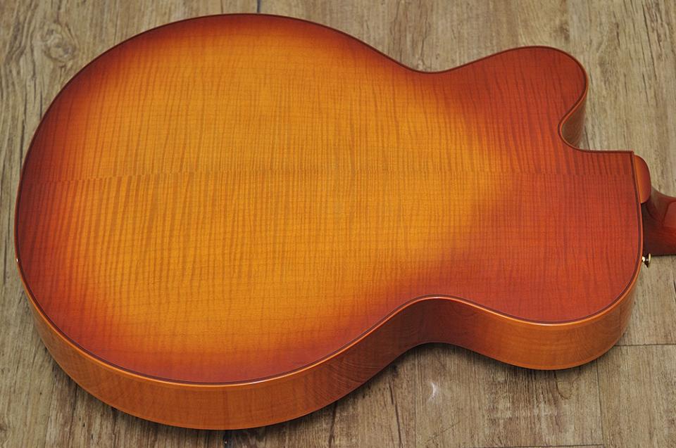 ボディはフルアコースティック構造ならではの豊かな生鳴りを持ち、ふくよかで温かみのあるトーンが特徴。コードワークでは厚みのある響き、シングルノートでは艶やかで伸びのあるサステインを生み出し、ジャズを中心に幅広いジャンルで活躍します。