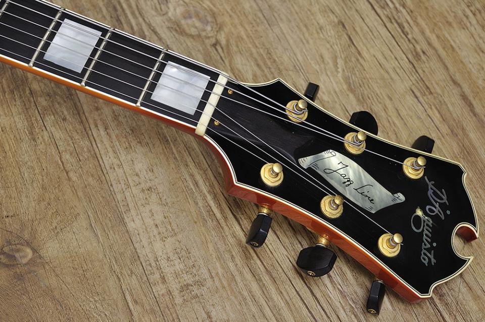 D'Aquisto(ダキスト): ディアンジェリコ(John D'Angelico)の弟子であるジミー・ダキスト(James L. D'Aquisto)によるブランドで、D'Angelico同様、アーチトップのフルアコースティックギターが主力。デザインの美しさとアコースティック感の強いサウンドから根強い人気を誇り、今なお数多くのジャズギタリストに愛用され続ける。(D'Aquistのキーワード検索結果はこちら)