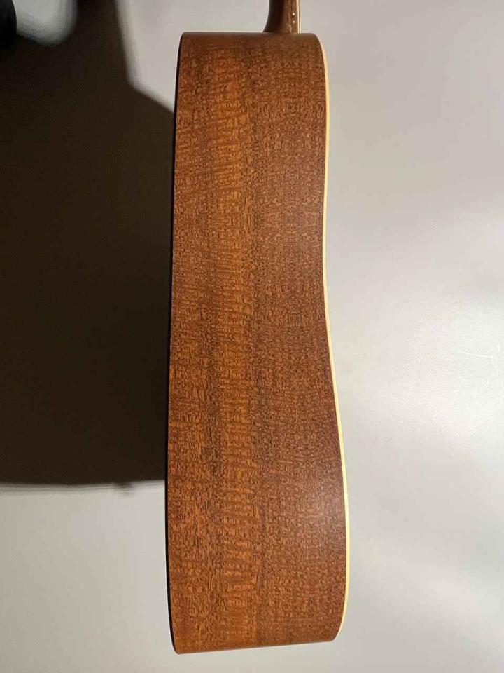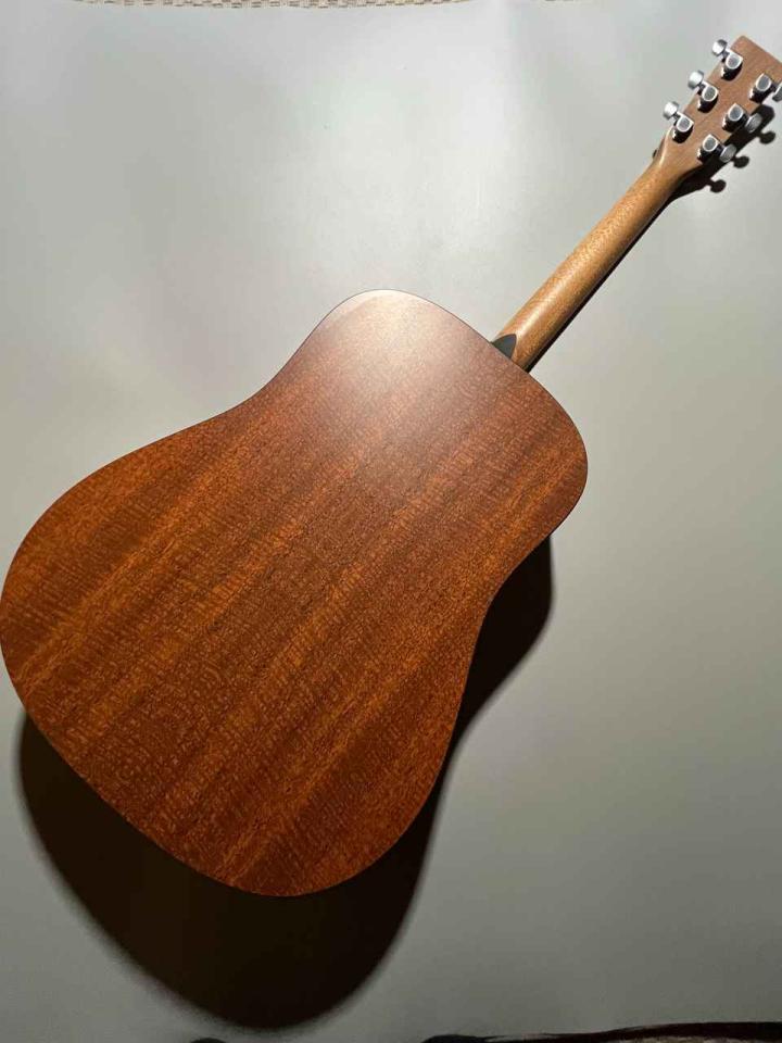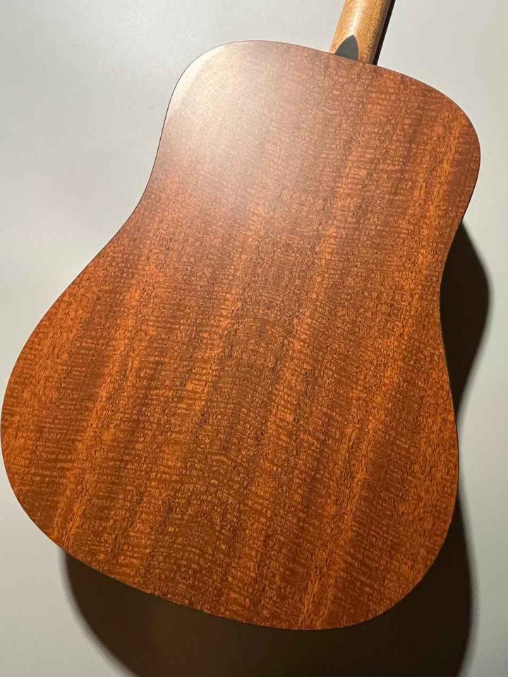 トップにはスプルース単板材を使用し、サイドとバックにはマホガニー柄のハイプレッシャー・ラミネイト材を用いたドレッドノート。