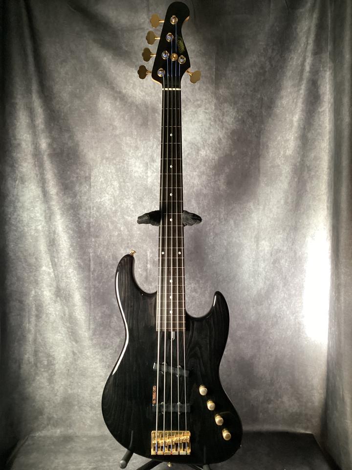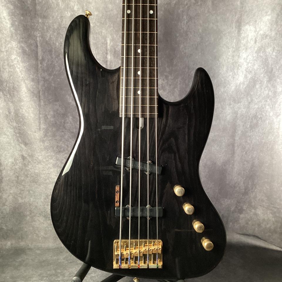 MOONならではのアッシュ・バルトリーニ・5弦・フレットレスにエボニー指板のセミオーダーの一点物です。