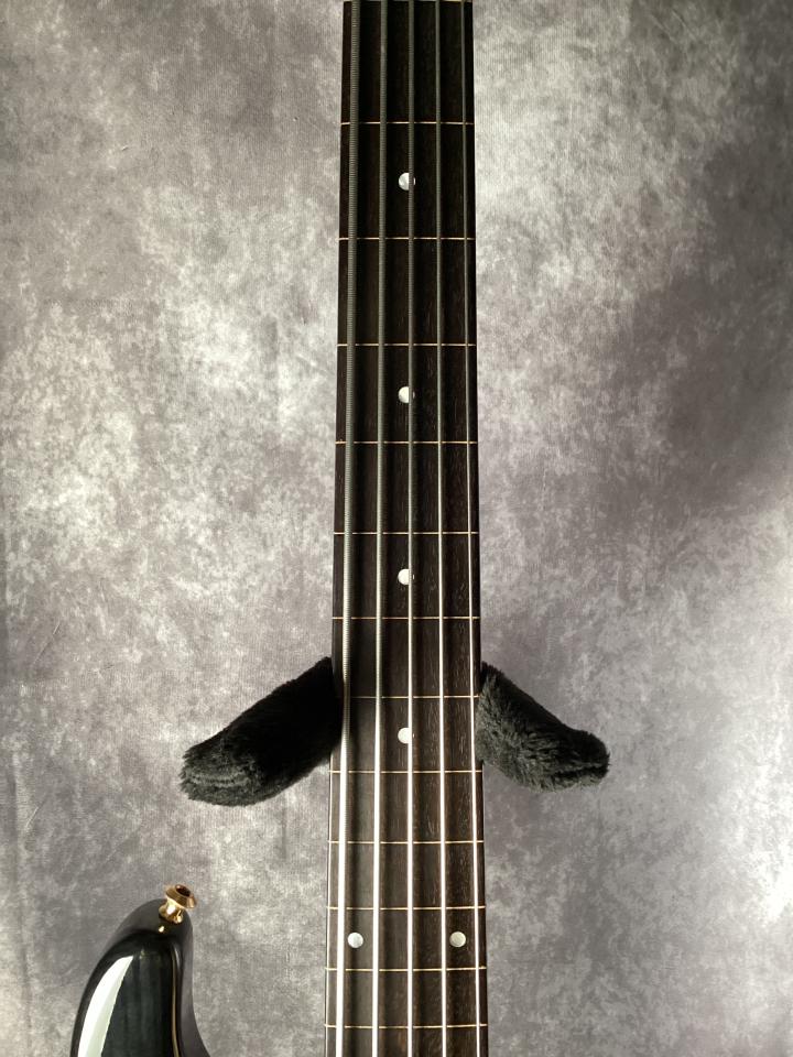指板にはエボニーを使用し、コーティングなしのナチュラルな仕様。フレットライン入りのため、フレットレスながらもピッチの把握がしやすい点もポイントです。