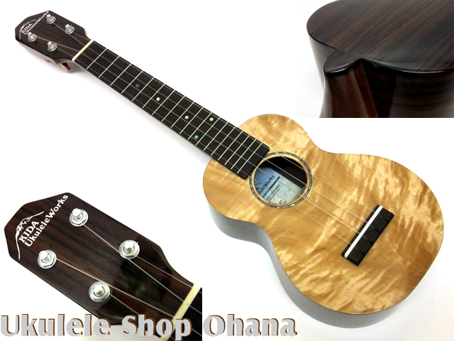 KIDA UkuleleWorks ソプラノロングネック カーリー栃/インディアンローズウッド #167