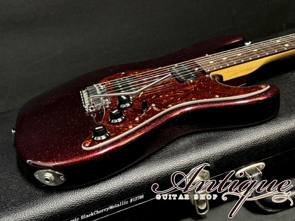 正規代理店オカダインターナショナルのオーダーモデル。黒々としたローズ指板にブラックチェリーメタリックカラーのクールな一本が極上美品コンディションにて入荷致しました。