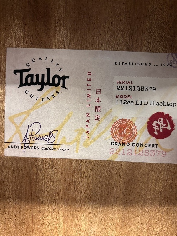 | 商品名 | Taylor 【日本限定モデル】Japan Limited 112ce-S Blacktop |