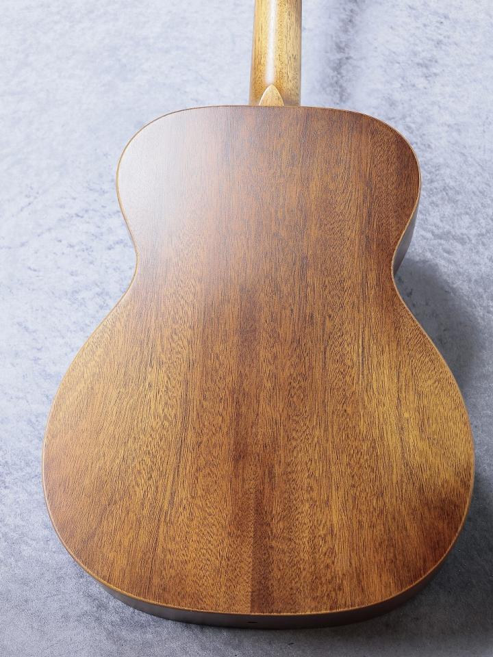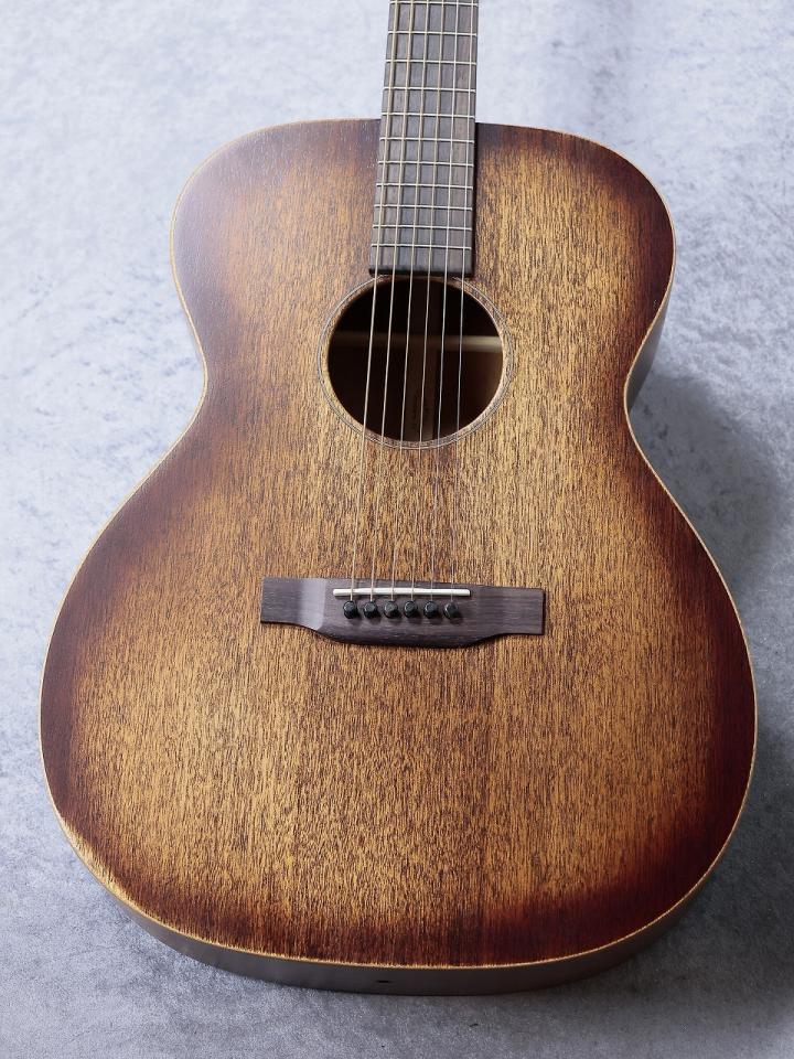 本器は現代の技術で再生産されたモデルとなりますが、現状の魅力もさることながら数十年後の可能性も感じさせてくれます。さらにオープンタイプのペグ、オールドデカールロゴ、ダイヤモンドインレイ等々、数多くの魅力が詰まった機種なのです。本器はストリートで使い込まれた外観とサウンドをモチーフに製造された、過去に類を見ない新しいスタイルのMARTIN。トップとネックに経年による色の変化を再現し、トップとサイドのつなぎ目は弾き込まれたことによるスレを再現するためにあえて木地が露出ているかのような非常に薄い塗装で仕上げられています。ブラックのペグボタンが採用されていて金属部もエイジド加工がされたような味のある見た目になっています。スタンダードな000-15と比較するとピックガードが無くペグが軽量な為より鳴りが大きく、000-15の魅力を増幅させたようモデルになっています。オールマホガニーモデルの最高峰と言える一本。是非一度手にとって見てください。