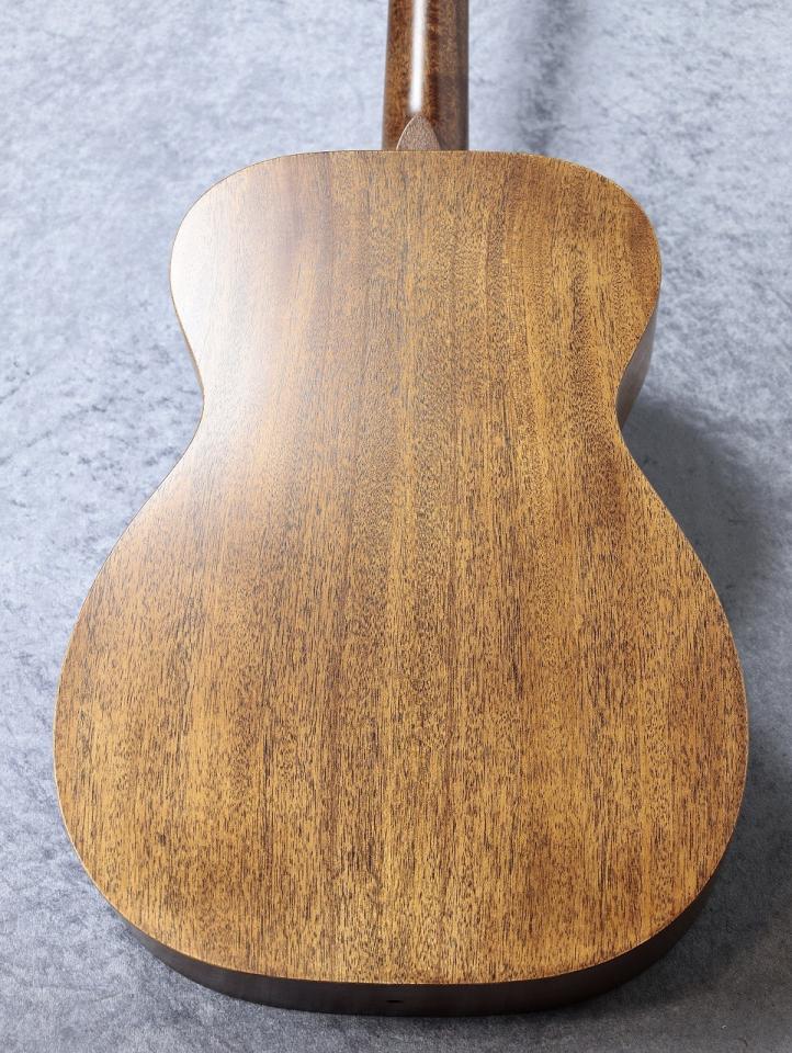 人気モデルとして定着している15シリーズ。実は歴史を遡ると黄金期でもある1935年に誕生しております。ヴィンテージ市場での人気も年々高まり、とても評価の高い機種となります。一番の理由は経年変化により年々増していく温もりのあるサウンドではないでしょうか。本器は現代の技術で再生産されたモデルとなりますが、成長したヴィンテージのように、数十年後の可能性を感じさせます。トップ、サイド、バック、ネック材にマホガニー材を使用したモデルで緻密でスプルーストップのもでるとはまた違った軽快でいて温かみのあるサウンドが特徴。軽快なサウンド・非常に立ち上がりの良い中高音域、小ぶりで軽量、それでいて大きく響いてくれるモデルです。00サイズのパーカッシブな低音と抜けの良い中高音からなるオールマホガニーらしい箱鳴りが強い響きは、気軽につま弾くのにも向いていて、ストロークサウンドは軽いタッチでもしっかりと響き、アタックを強く入れると若干割れたような荒っぽいサウンドとなるため、表現の幅が広く、音のダイナミクスが付けやすいサウンドかと思います.さらにオープンギアタイプのペグ、オールドデカールロゴ、ダイヤモンドインレイ等々、上位モデルには無いサウンドと外観からUSA製Martinの中では一番お求めやすいモデルではありますが、オールマホガニーでないと手に入れられない多くの魅力が詰まっています。小振りな000(トリプルオー)よりも更に小さな00(ダブルオー)サイズは抱えやすく42.9㎜の握りやすいネックシェイプで演奏性も抜群!上級者の方も納得できるモデルですが、これから新たに楽器を始める方にもイチオシの機種!中価格帯で楽器を検討中の方、長く育てられる1本を手にしたい方は是非一度お試しください!