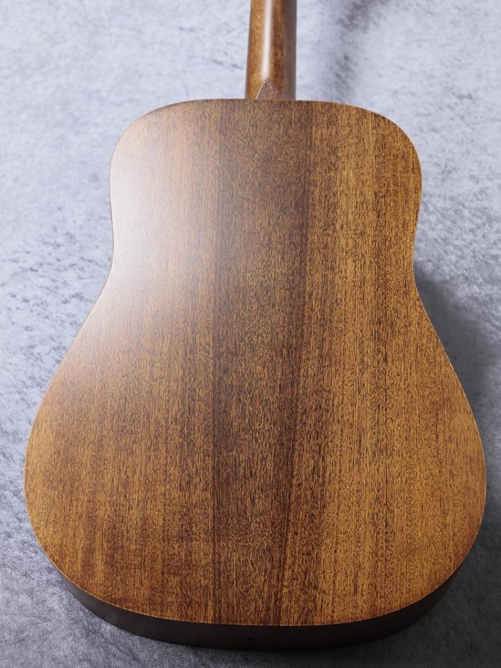 立ち上がりが良く温かみのあるサウンド。立ち上がりよく抜けの良い中音域。キラっとした高音域の響きが気持ち良くいつまでも爪弾いていたくなる響き。ドレッドノートサイズなので低音の安定感もあり、ストロークをしたときの伴奏楽器としての説得力も十分感じられます。大きな音量を出そうとした際に少しザラついた響きになり感情がしっかりと音にのって響きます。