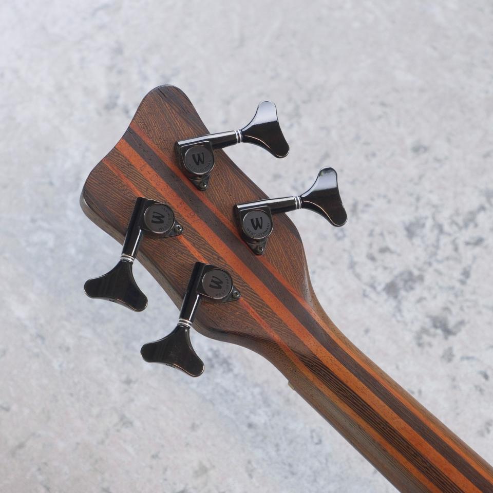 サムベースらしい材と言えるブビンガボディとウェンジ材を使用したネックの組み合わせ。