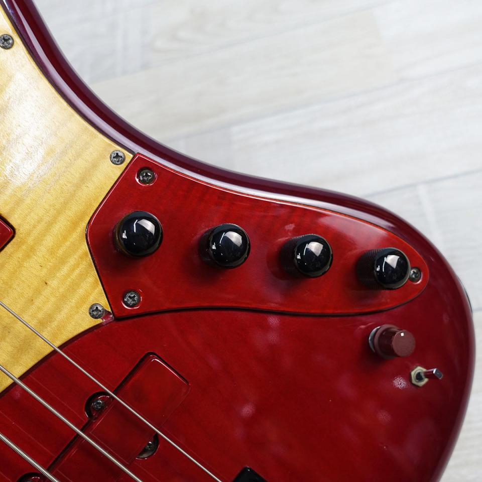 オリジナルのサーキットにも不具合なく、マスターボリューム、バランサー、トレブル、ミドル、ベース、アクティブ/パッシブ切り替えミニスイッチという仕様。