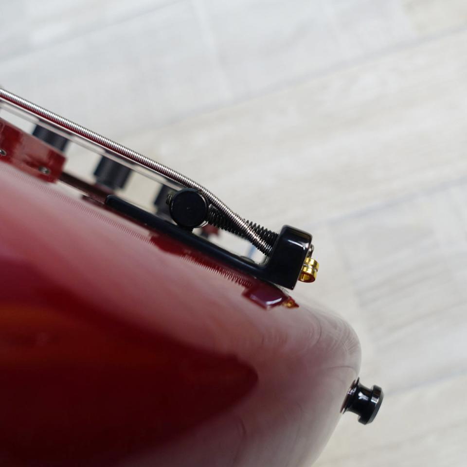 アルダーボディ、メイプルネック、エボニー指板のウッドマテリアル。