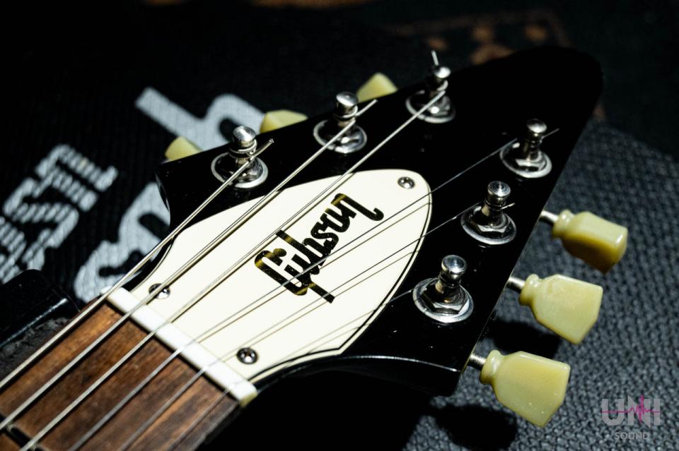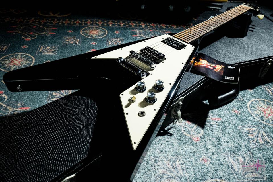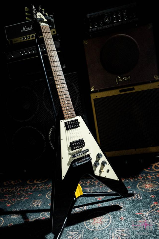 マホガニーボディ&ネック、ローズウッド指板、2ハムバッカー、左右対称のVシェイプに大型ピックガード、Gibsonロゴ入りトラスロッドカバーなど、王道スペックをしっかり踏襲しています。