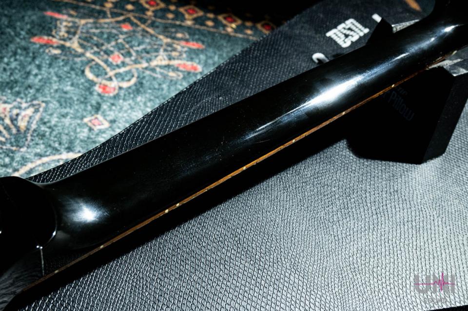 ネックはナット幅約43mm、やや幅広でフラットなUシェイプといった印象です。