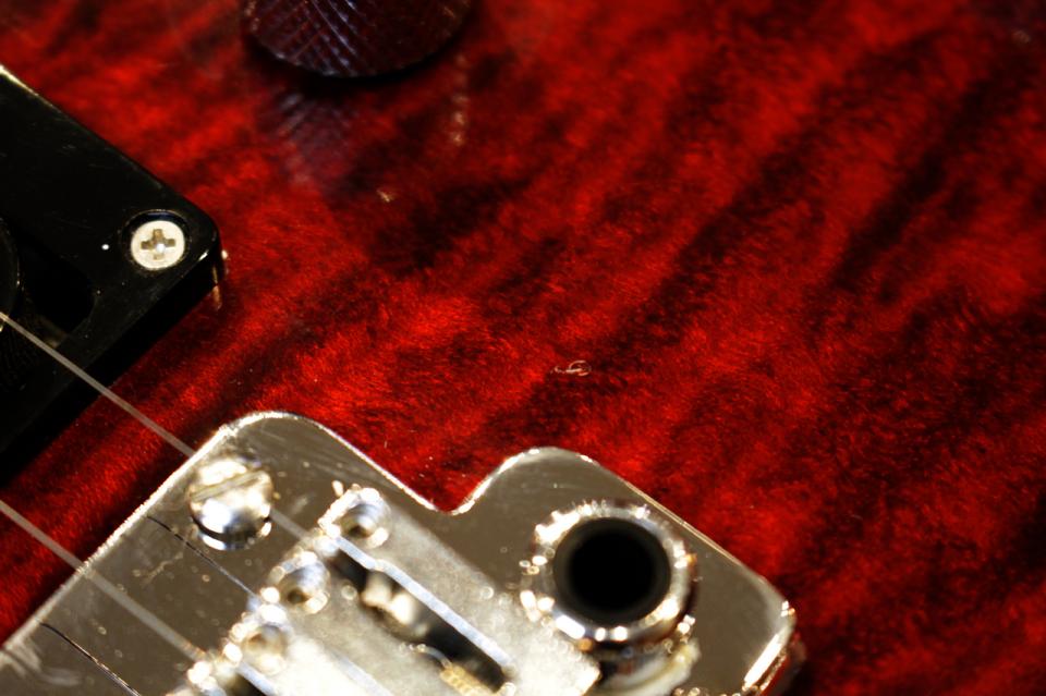 傷:アームコンターに数ヶ所、ボディバック上下に数ヶ所、1弦側ネックポケットに欠け有り、1弦側ブリッジ近辺に打痕有り。