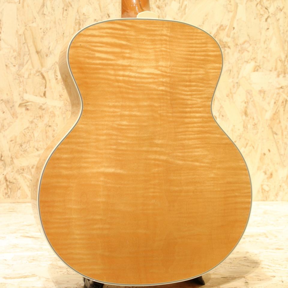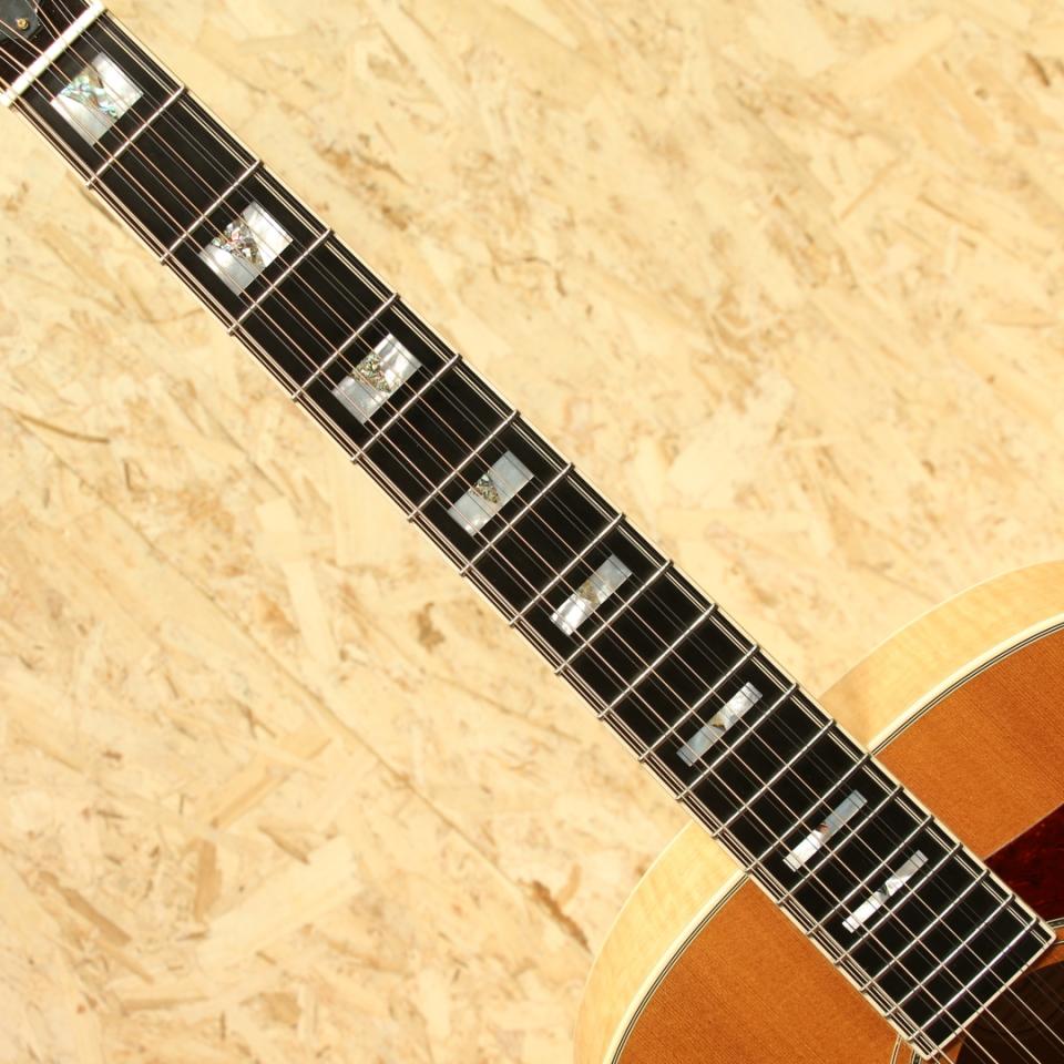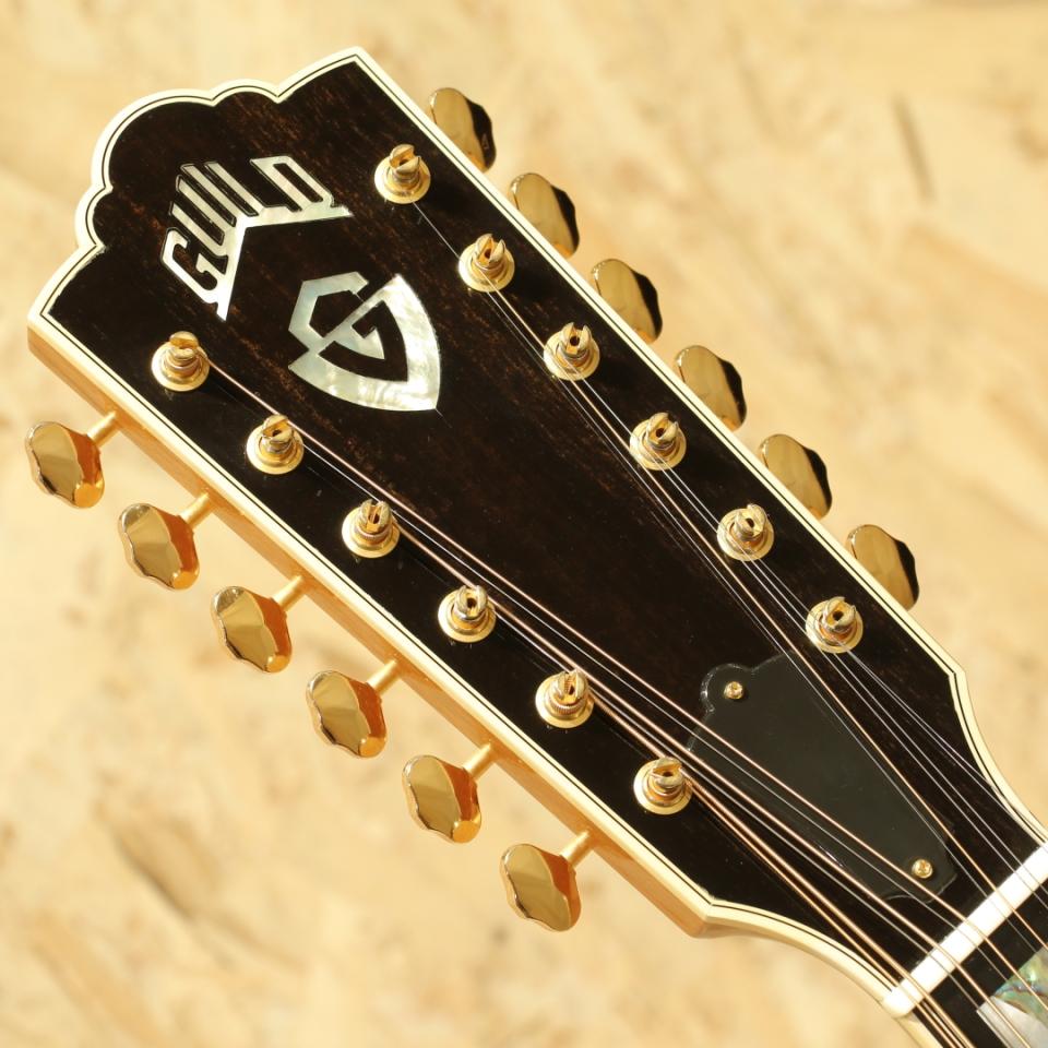 Paul SimonやJohn Denver、国内では井上陽水氏、南こうせつ氏、松山千春氏など数多のフォークシンガー達が愛した"Guild (ギルド)"。古くはアメリカンブランドを象徴するブランドでMARTIN、GIBSONと並び御三家ブランドとして名を馳せていました。本器はMTVアンプラグドにてスティーヴィー・レイ・ヴォーンが出演した際に使用したモデルの近年代仕様”F-412”。2011年製USED品です。スプルーストップ、メイプルサイド&バックでバック面はアーチ加工が施されております。メイプルネック、エボニー指板&ブリッジ、オリジナルグローバーミニロトマチックゴールドペグ、パール&アバロンVブロック指板インレイ、オリジナルピックガード、ラッカーフィニッシュ。かつて「12弦と言えばギルド」と言われたほど、特に12弦が高い評価を得ており、内外のギタリストに愛用されています。1990年代にクラプトンや多くのアーティストが出演し再びアコースティックブームを引き起こすきっかけとなったMTVアンプラグドにてスティーヴィー・レイ・ヴォーンが製造工場と細部の仕様は若干違うもののこの12弦と同品番にて出演。ブルースをかき鳴らすレイボーンにノックアウトされた方は多数いらっしゃるのではないでしょうか。ジャンボボディーならではの奥深いリバーブ感を持ち12弦特有の広がりのある響きはまさに想像どおりのビッグサウンド。この頃のギルドに期待したいゴリゴリの無骨な感触はもちろん、繊細な表情も万遍なく合わせ持っている点は流石高級モデル。重厚さがあり、エッジが効きながらも甘いプレーン弦の響きは格別です。メイプル特有の煌びやかさと12弦が上手くマッチングし、明瞭且つダイナミックなサウンド。弦と弦がボディを通じて相互干渉するが故の馴染み合った音色。エフェクターのコーラスのように別の音がぶつかり合っているような感じも少なく、この響きは12弦ギターでしか出し得ず、イーグルスのホテルカリフォルニアのイントロなどでこのような12弦サウンドを体感することが出来ます。あのサウンドを出すならばやはり12弦でしか成し得ないでしょう。トップ面バインディングの下部中心に塗装のチップが1か所とボディエンドにゴマ粒ほどの極々小粒の当てキズ、ヘッド1弦側サイド部に細やかな擦れキズと当てキズがあるものの外観を損なうものでは無くその他には拭きキズがある程度と非常に綺麗なコンディションが保たれている本器。ネック・プレイコンディション共に良好で弦高も低く大変弾きやすい状態です。12弦の特別な響きをご体感下さい。オリジナルハードケース付属が付属いたします。