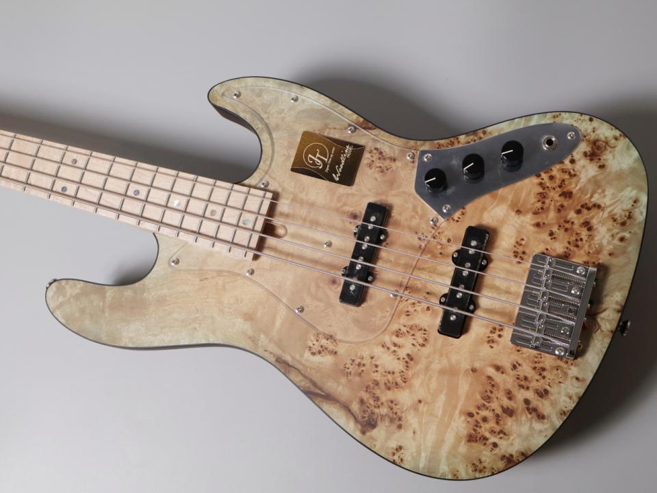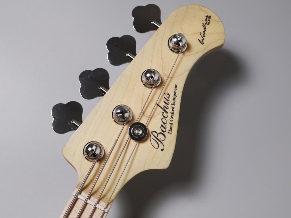 WLモデルは、Handmade Seriesで培ったWOODLINEの持つディンキーシェイプのボディを継承し、一般的なJBタイプのエレキベースより少し小さくなっているので、どんな方でも弾きやすくなってます。ボディトップには美しい杢目が目を引くバールメイプル材を採用し、ボディバックには中低音が豊かなナトー材、ネック&指板にはメイプル材が使用されております。