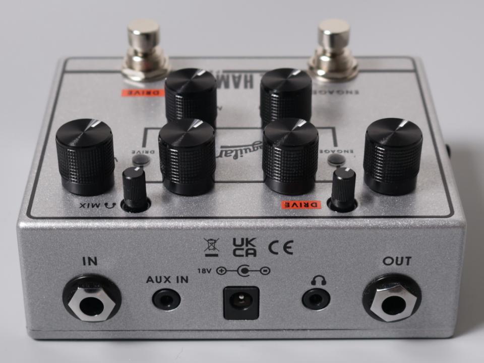 TONE HAMMER V2は、ドライブ回路をリニューアルし、オーバードライブトーンとクリーントンをより正確にコントロールできるようになりました。ドライブスイッチが追加されたことにより、オーバードライブトーンへの切り替えができるようになりました。さらに、AUX INやHEADPHONE OUT機能が備わったことにより、自宅やホテル等での個人練習のお供に最も適してます。リニューアルされたドライブ回路とヘッドルームの広いイコライザー回路を組み合わせることにより、モダンでブライトなドライブサウンドから、ウォームでダーティーなドライブサウンドまで幅広いサウンドメイクを可能としてくれます。