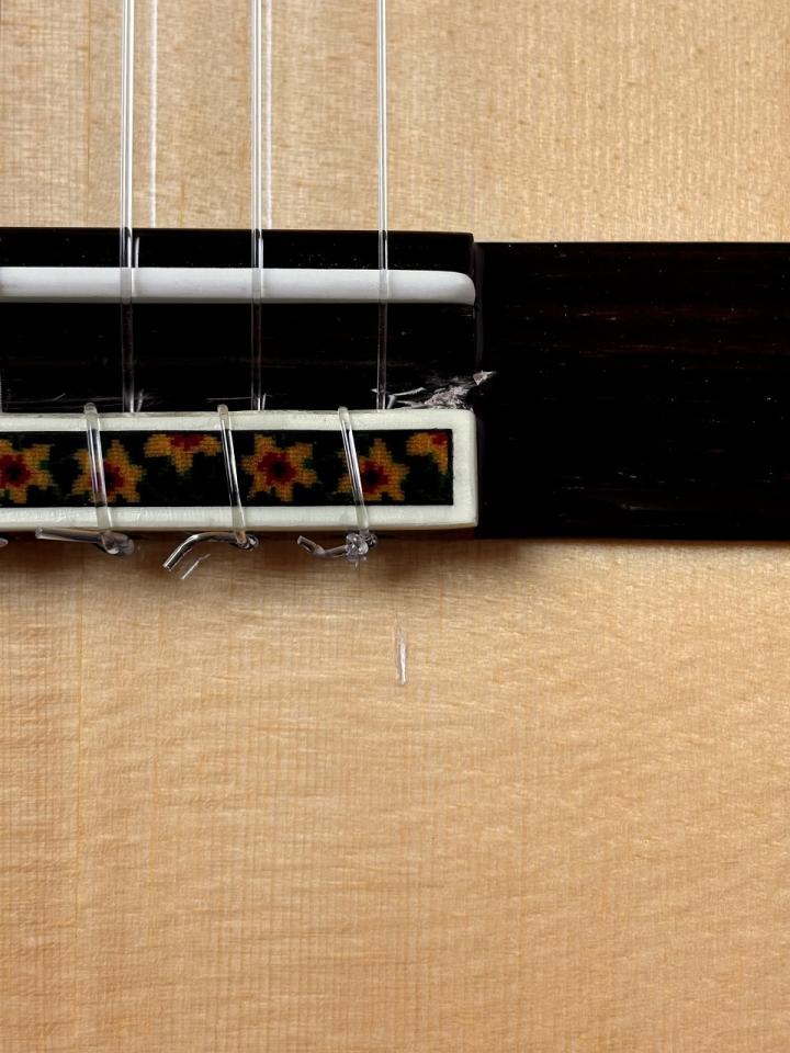 サドル下1弦側に弦飛びの傷アリの為、特価にて販売!!