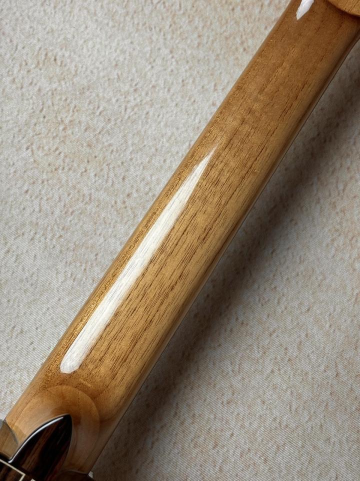 ネック内部にカーボンファイバーを仕込むことで、木材特有の弱点である反りやねじれを抑制。湿度や温度変化の影響を受けにくく、日本の気候環境でも安定したコンディションを維持できます。結果として弦高の変化が少なく、長期間にわたり快適な演奏性を保てます。