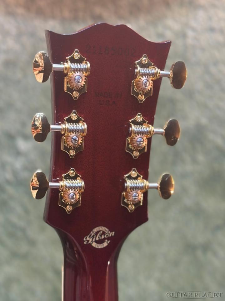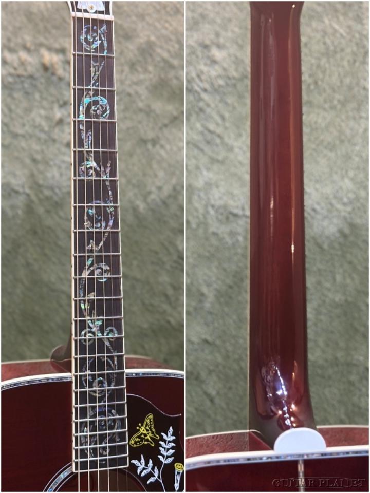トップ&バックのボディ・バインディングには『アバロン』が使用され、指板とヘッドストックには美しく複雑な『ヴァイン・インレイ』が施されています。ゴールドの『ウェーバリー・チューナー』、『マザー・オブ・パール』のトラス・ロッド・カバーなど、プレミアムな仕様となっています。