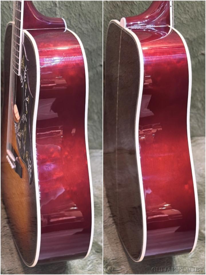 1960年にギブソン初の『スクエアショルダー』としてリリースされた、ハミングバード。トップはアメリカ北東エリアの『セレクト・フレイム・メイプル』、サイド&バックにもアメリカ北東エリアの『キルト・メイプル』を使用。ネックには純種の『ジェニュイン・マホガニー』、中南米エリアの主にグアテマラン産を使用しています。指板&ブリッジは『インディアン・エボニー』を使用。