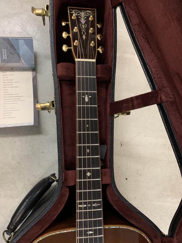 基本はStyle41をベースに00シェイプ、シェード(サンバースト)カラー、イタリアン.アルパインスプルース、ココボロ サイド/バックなどMartin選定の希少な材料、高級感あふれる作りです。(写真 14)