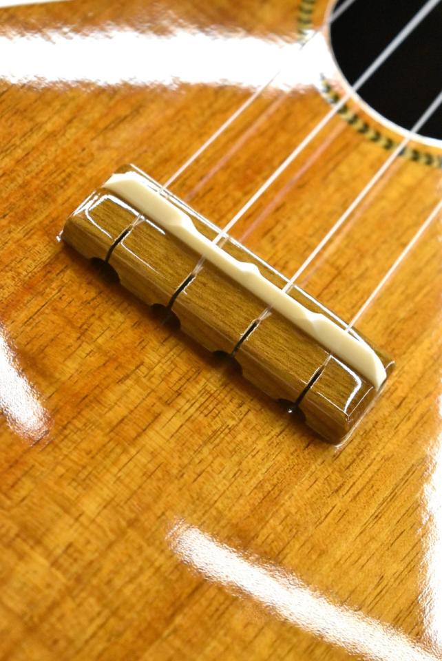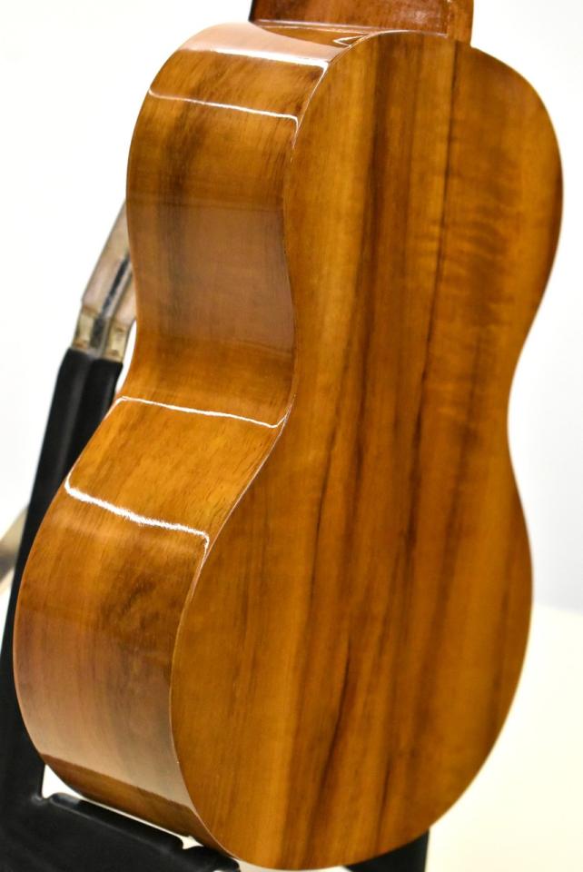 このモデルに使用するハワイアンコア材はワンランク上のものを使用しているため、見た目も華やかで美しく、きらびやかで明るく、音量も豊かな1本です。