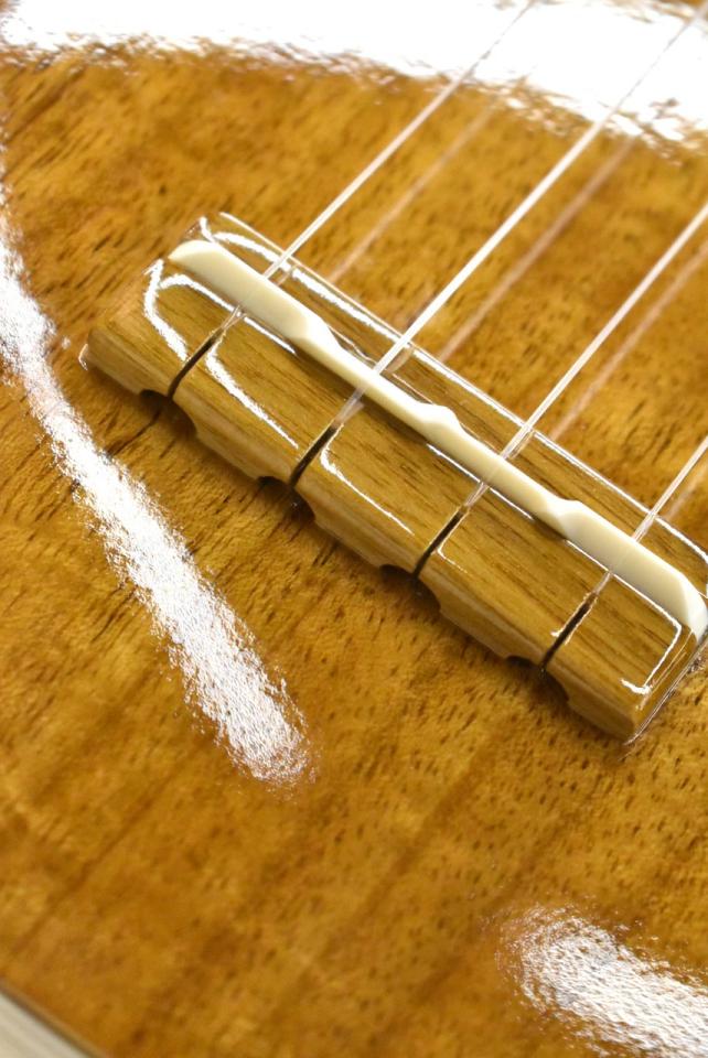 音ぬけの良い明るい響きと、杢も美しいハワイアンコアボディ。