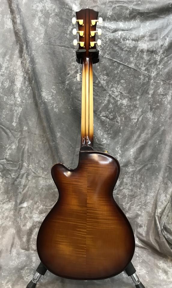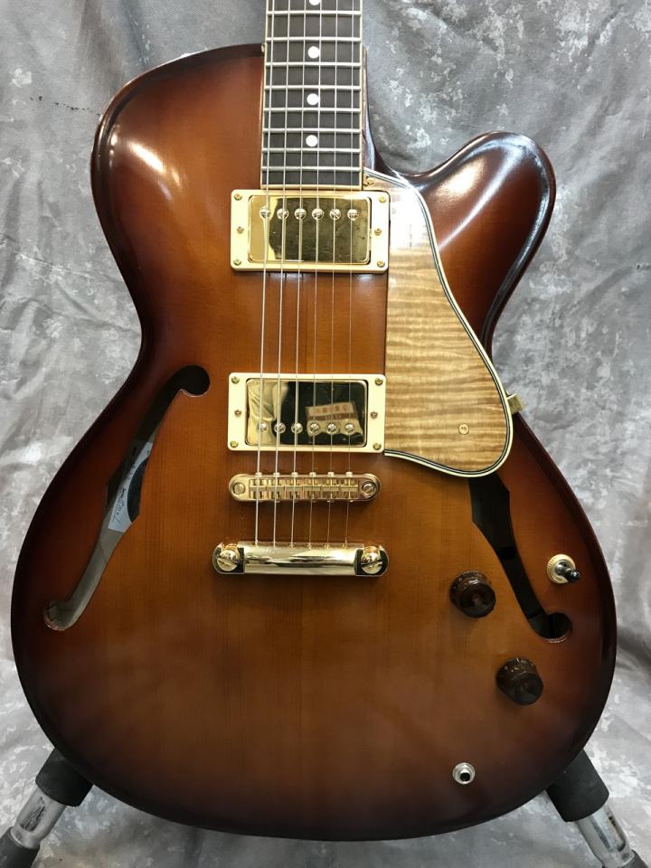 ボディにはセンターブロックが入ったセミアコ構造、トップにはソリッド・スプルース、サイド、バックにはソリッドフレイム・メイプルを使用。
