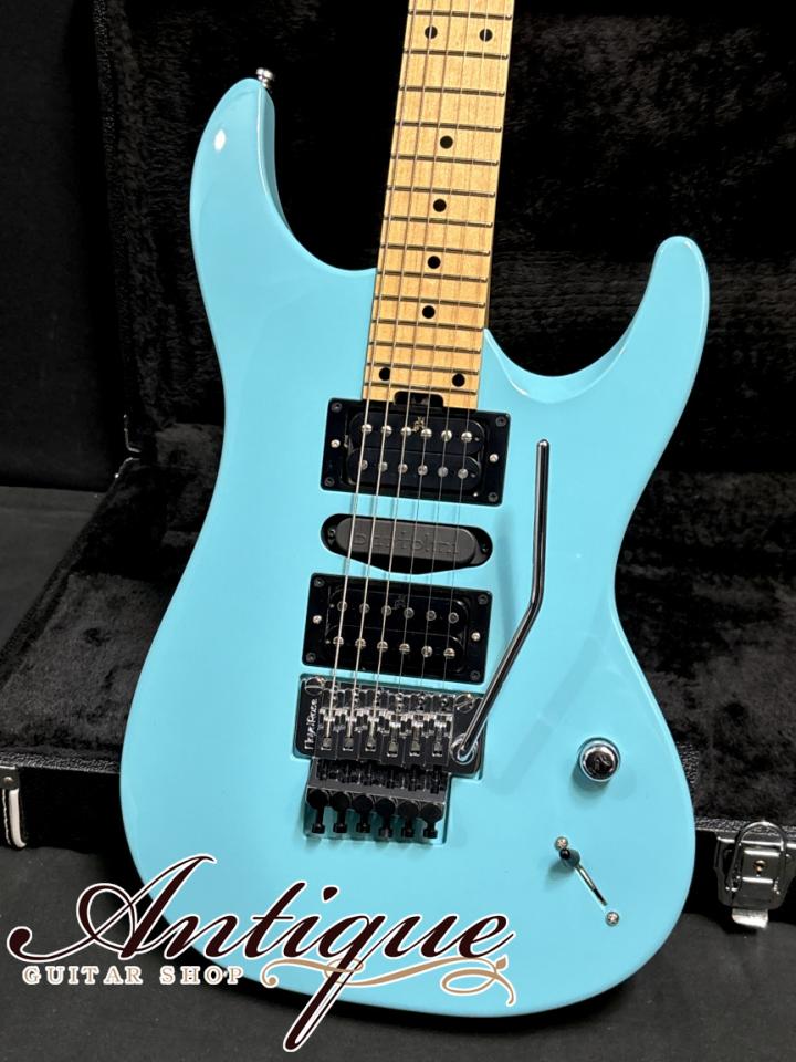 またプレイヤー目線にて製作された実践的なモデルとなる本機については、サウンド面にも高い拘りを持ち、ピックアップには高崎晃氏が開発に関わったプライムモデルでもお馴染みのLQ-500(フロント)とDyna-Bote(リア)ハムバッカーを搭載し、更にセンターにはBartolini S-3を搭載したHSHレイアウトを採用。クリーンからハイゲインまで幅広いサウンドメイキングを可能とし、更にダウン方向のみのオリジナルフロイドローズブリッジ搭載によって、メイキング幅を広げつつチューニングを安定させる仕様となっております。またこちらにはEVH D-Tunerが搭載されており、瞬時にドロップチューニングすることを可能とします。コントロールは1Vo&5wayセレクターと非常にシンプルかつ直感的に使える仕様にて、プロギタリストが求める無駄を排除した実戦的な内容となっております。サウンドキャラクターとしては非常に高いクオリティが魅力で、レスポールのようなローミッドから、ストラトのようなジャキっと抜ける出力、テレキャスのようなレスポンス高く歯切れの良いトーンまで、幅広くそれもハイクオリティに再現し、ライブからスタジオまで使う場所を選ばないまさに実践向けといったスペック。ファンの方だけでなく、ギタープレイヤーなら誰しもが納得の使える一本となっております。