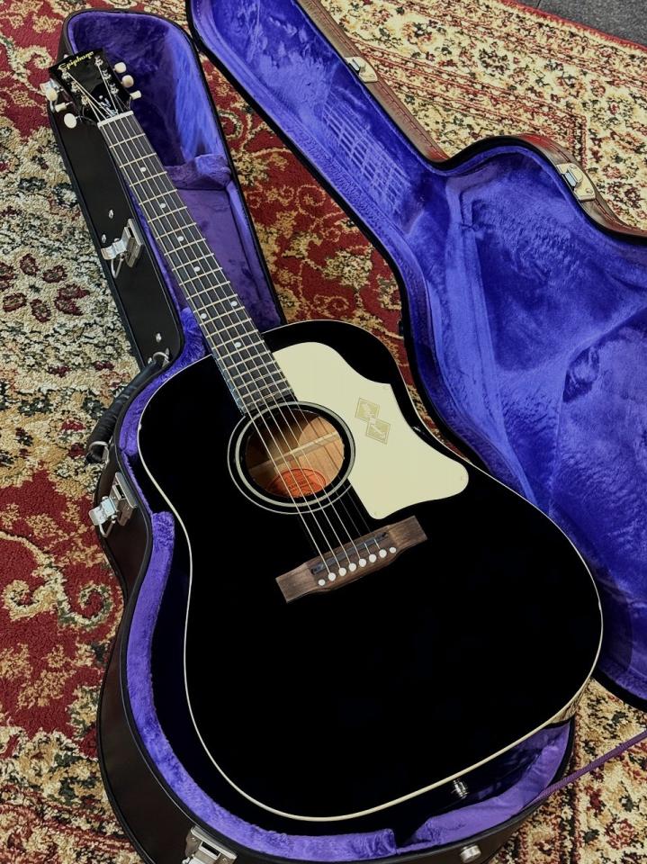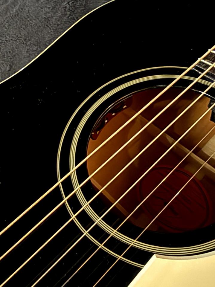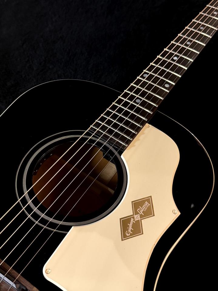 氏の代名詞とも言えるGibson J-45 Ebony。リーズナブルプライスでありながらGibson社のThermally Aged加工技術を惜しみなく投入しユーザー満足度の向上に努めた本作!