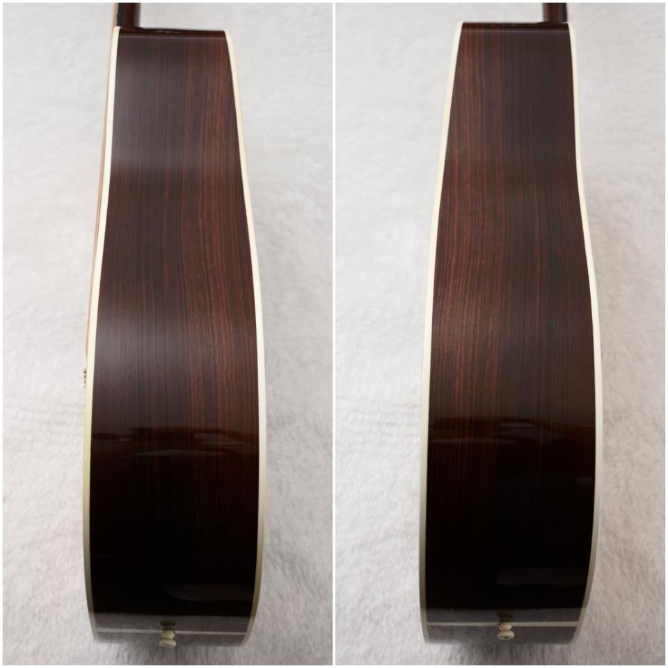 現行のD-28は軽やかな音の出が特徴の1つとしてございますが、本個体のノンスキャロップドのブレーシングは力強さが身上。